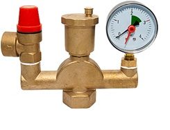 Предназначена для защиты закрытых систем отопления с тепловой мощностью до 100 кВт от избыточного давления и завоздушивания. Представляет собой предохранительный клапан, автоматический водухоотводчик (с запорным клапаном) и манометр. Присоединения консоли к системе стандартная трубная внутренняя резьба. Монтаж в вертикальном положении на участке трубопровода выше котла. Установка запорной арматуры между котлом и группой безопасности недопустима.