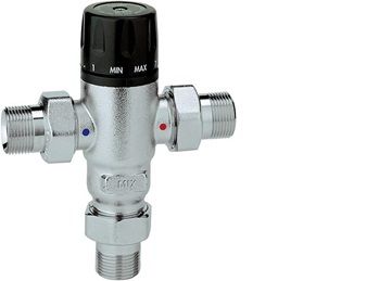 Термостатический трёхходовой смесительный клапан предназначен для распределения потока жидкости в системах отопления или охлаждения, изготовлен из бронзы и оснащён защитным колпачком. Шток клапана изготовлен из нержавеющей стали и оснащен двойным кольцевым уплотнением.